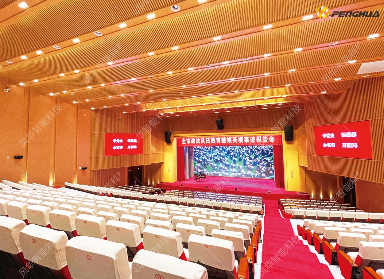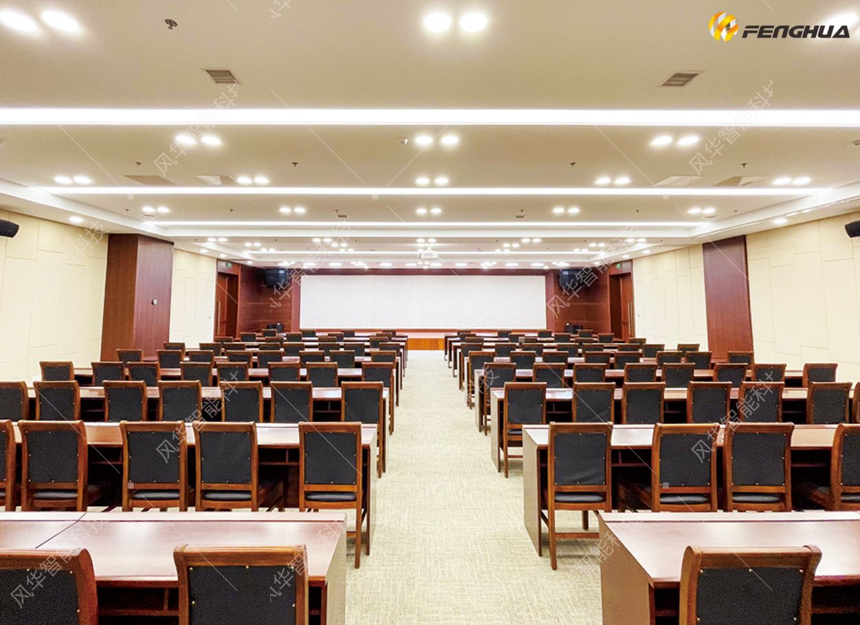 平度圣达商务中心报告厅作为项目核心会议载体,定位为高端政务会议、企业年会、学术论坛、商务发布、培训宣讲多功能厅堂,兼顾专业性与实用性,适配300-500人规模使用。风华智能结合报告厅场景需求,打造“专业音视频+智能管控+弱电配套”一体化解决方案,实现“高清呈现、高保真扩声、智能联动、便捷运维”,匹配平度商务地标高端接待标准,与整体项目弱电、音视频系统无缝衔接。