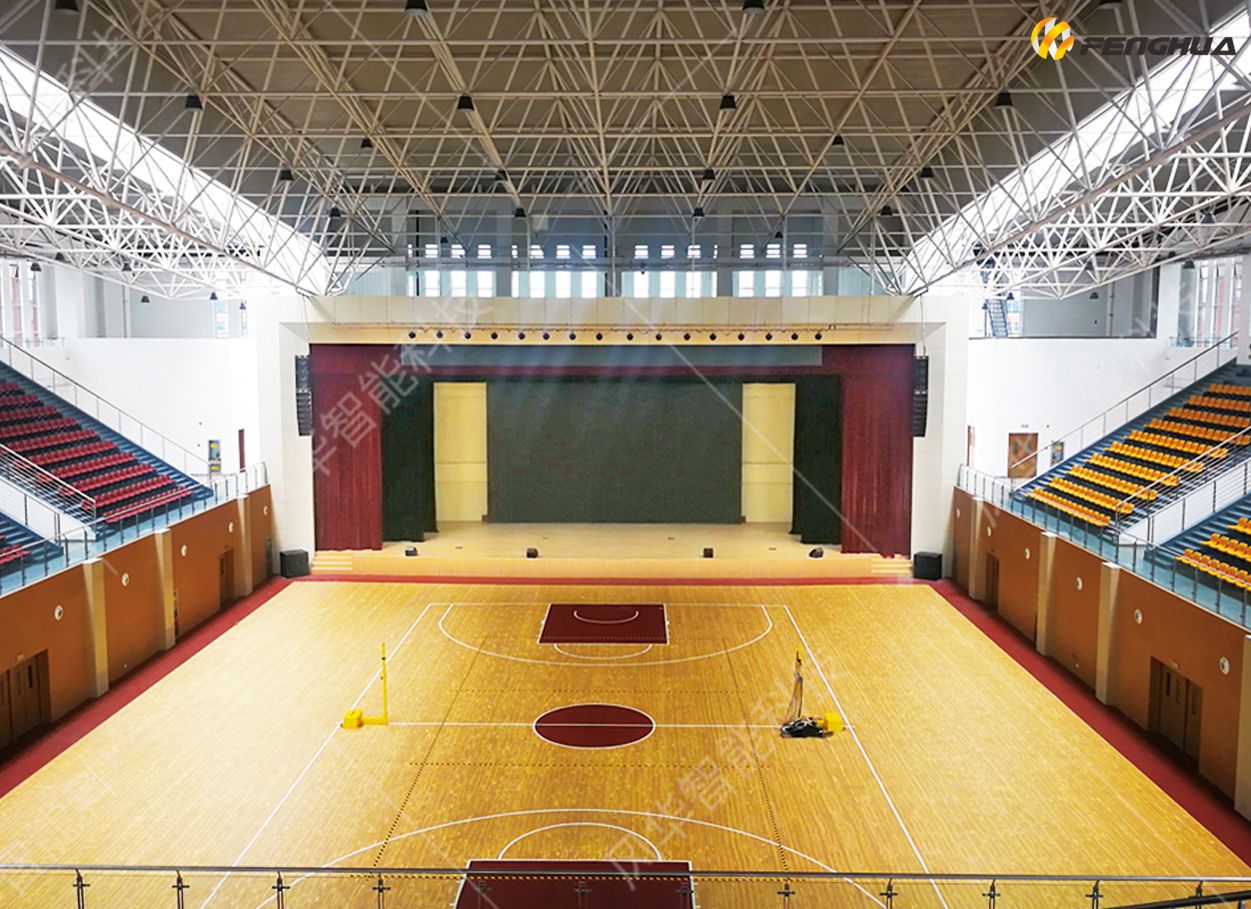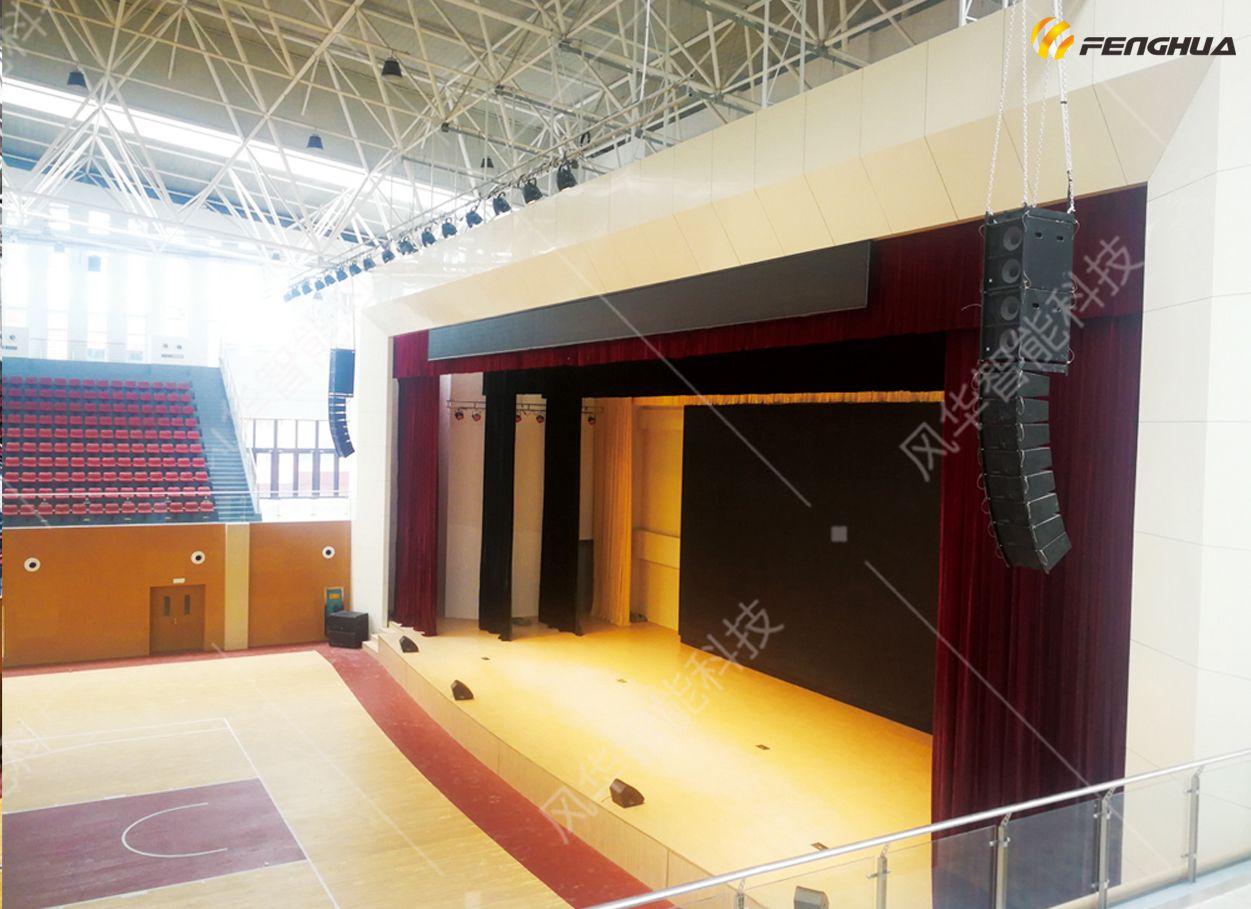 学校使用的体育馆通常要求功能全,使用范围广,所以在设计时就已经考虑了多种功能,系统包括音频、视频、录播、舞美灯光、舞美机械、控制系统等。在项目实施期间,体育馆层高较高,从布线到吊装都遇到不同程度的难度,好在项目顺利完工,现已正式投入使用,并已召开过多次大会及演出,使用单位非常满意。