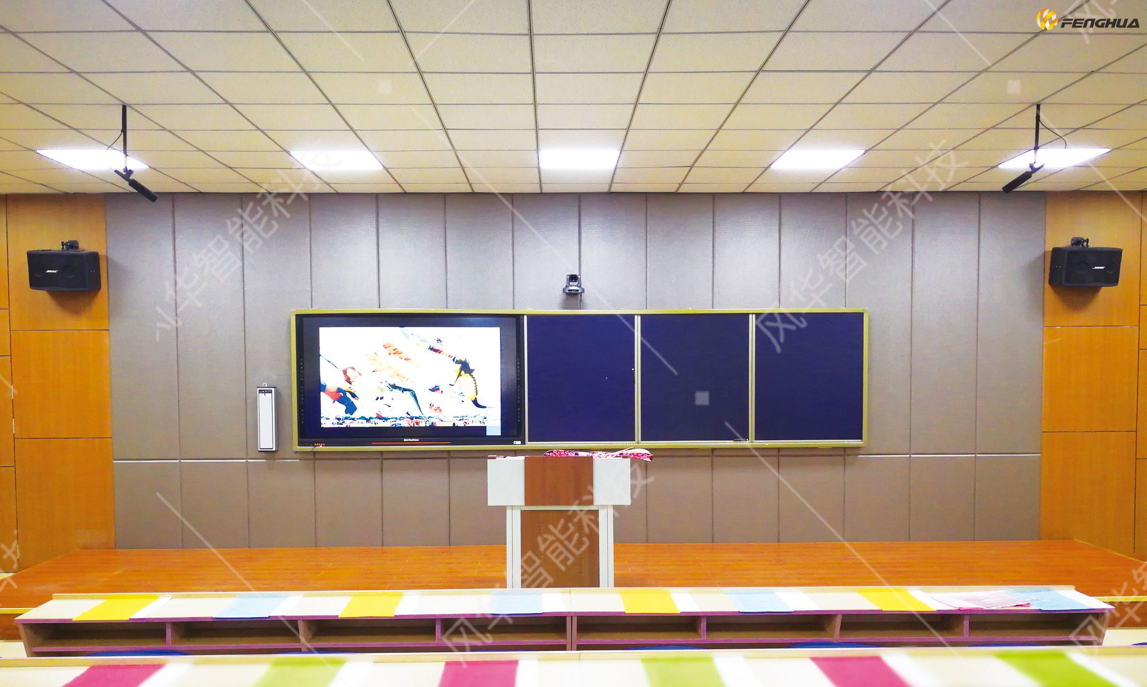 • 具备专业扩声系统,满足语言、音乐、语言兼音乐、文艺演出的扩声需求;且扩声需满足多声道电影播放要求;