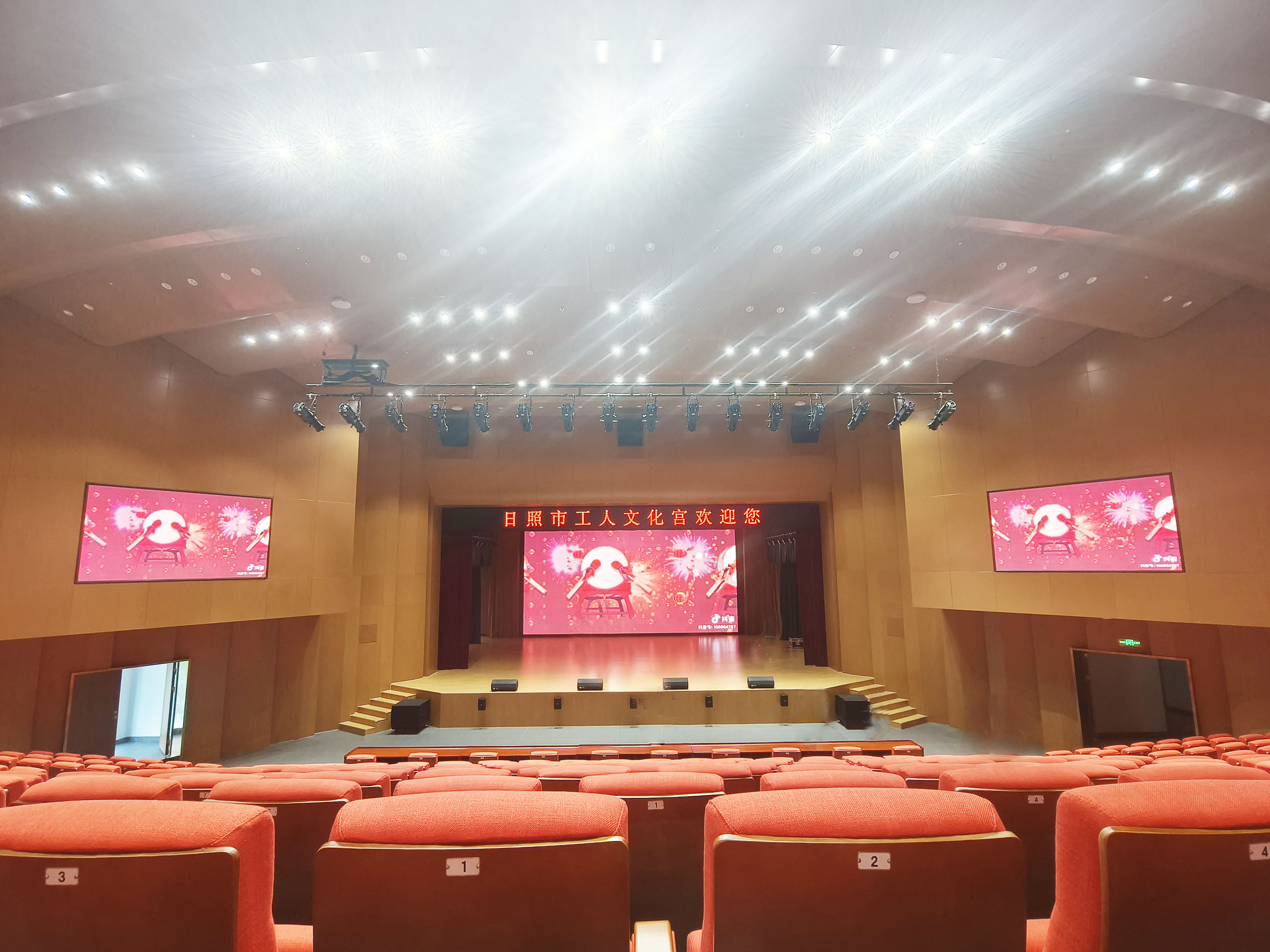 该项目职工剧场是时常举行大型会议和演出活动的重要区域,因此客户期望拥有较好的使用效果。根据剧场的建筑特点,为其量身打造了一套高标准现代化的扩声系统、舞台机械以及舞台灯光系统。