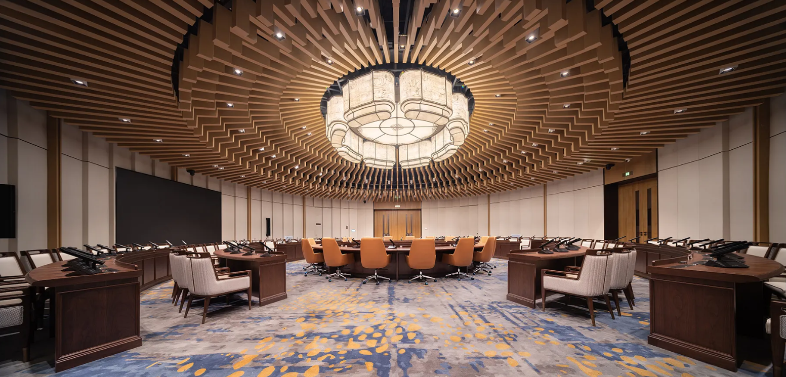 酒店会议系统 / 发言 / 同声传译系统是满足高端国际会议、商务论坛、多语种交流的专业会议设备,包括手拉手发言、数字会议主机、同声传译译员间、红外发射 / 接收单元、会议中控等,实现高效、有序、多语言无障碍沟通。